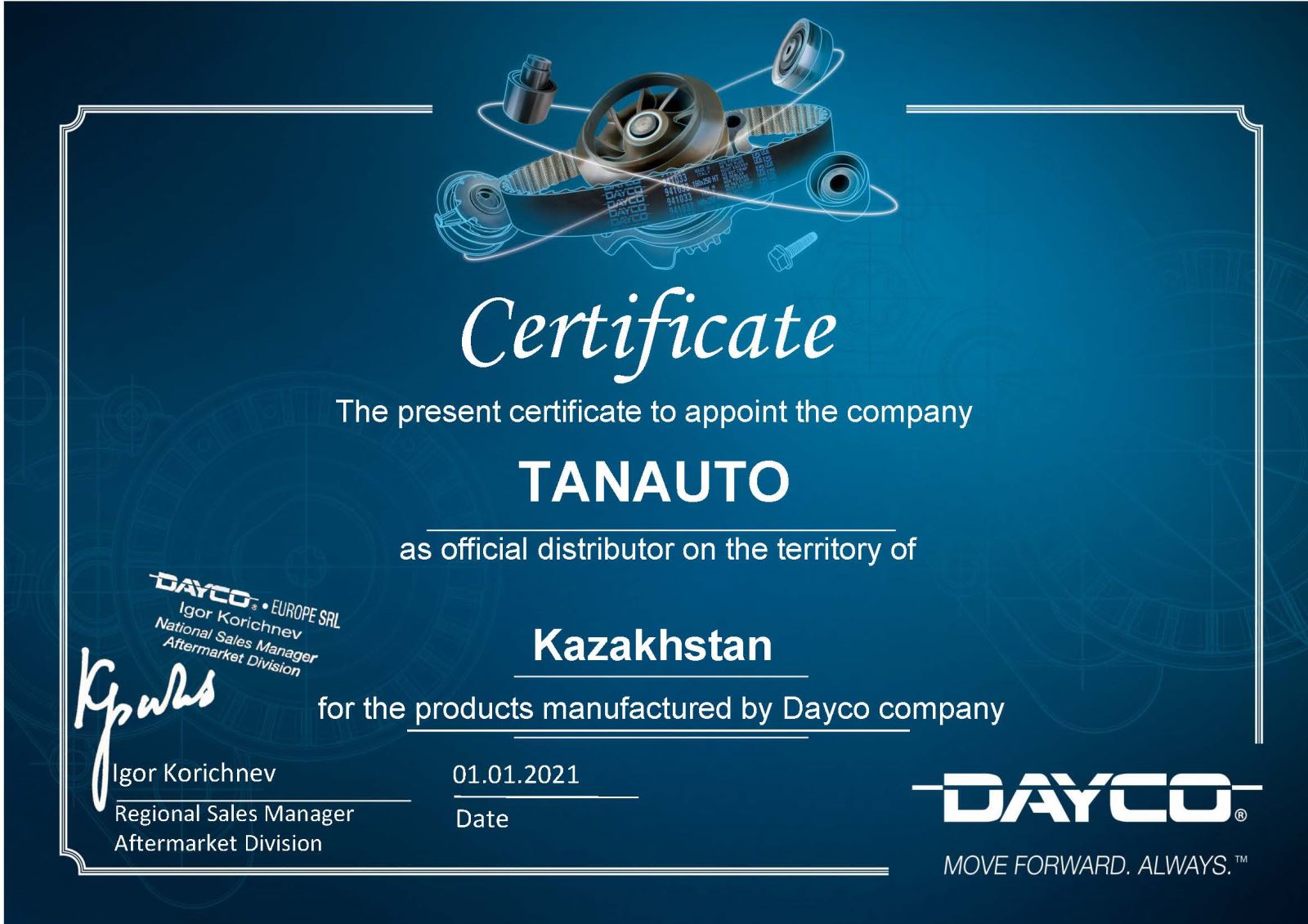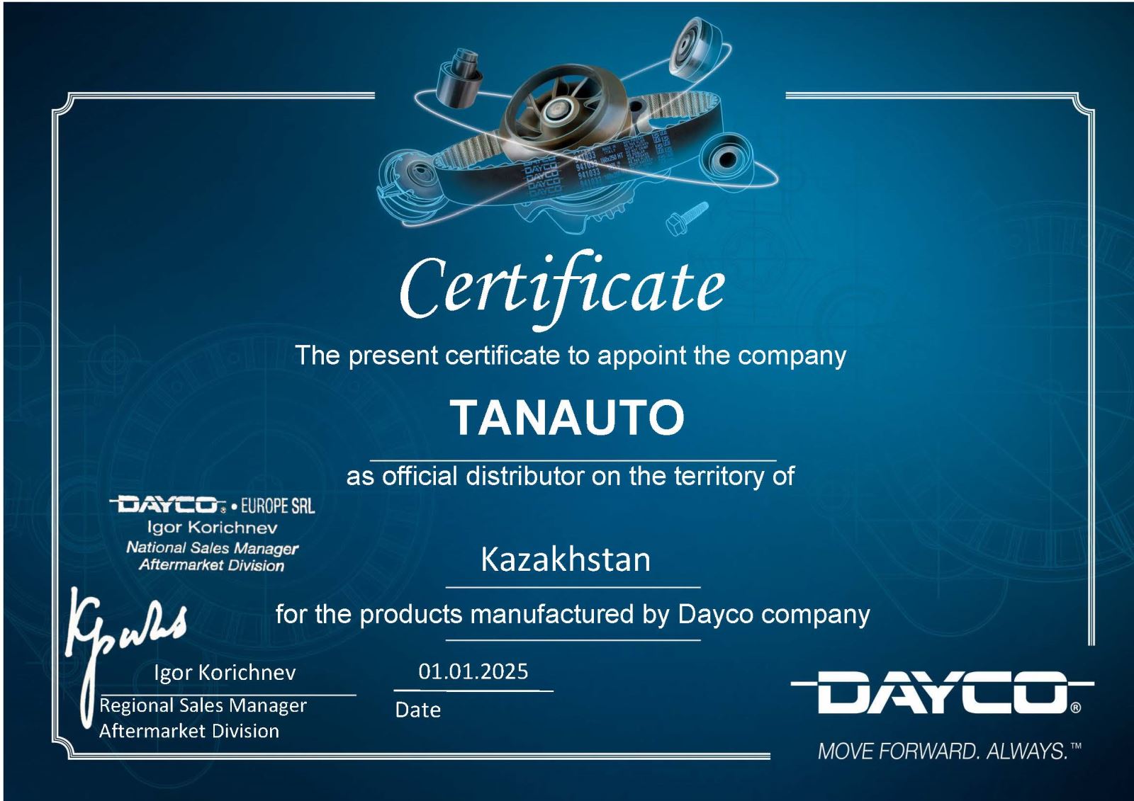Все производственные предприятия компании DAYCO соответствуют качественным стандартам, предусмотренным международным сертификатом качества(ISO 9000, ISO 9001, QS 9000 и ISO 14001).