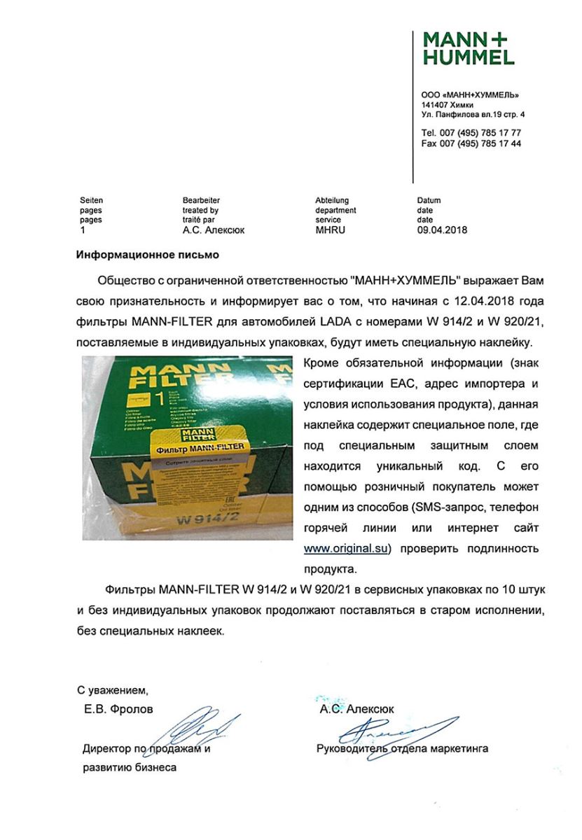 | Mann-Filter Russia | Mann-Filter official |